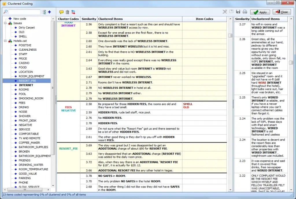 • 分析代码频率,使用聚类分析,链接分析,序列分析或多维尺度分析探索代码之间的联系