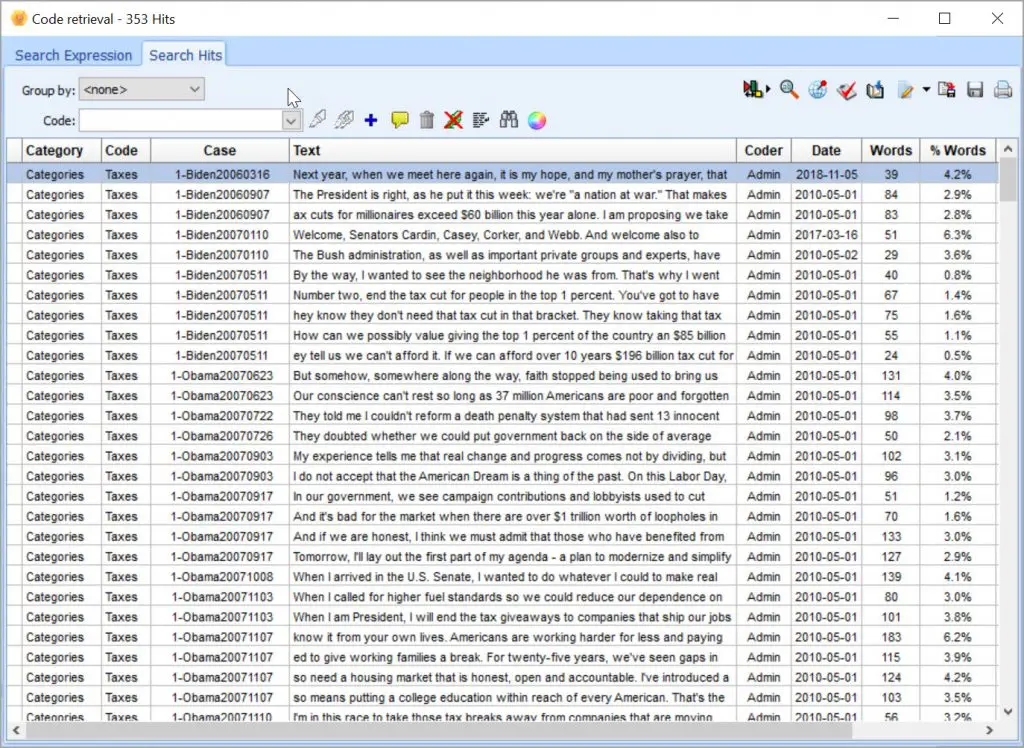 使用七个以上的文本搜索工具来实现更快,更可靠的编码,这些工具包括关键字搜索,节检索,向用户学习的强大的按示例查询,以及自动将相似文本段分组的特有簇提取。