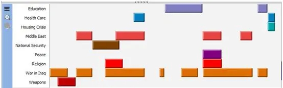 • 在QDA Miner中,用于可以根据时间和位置检索编码数据,并在时间线和地图上绘制事件